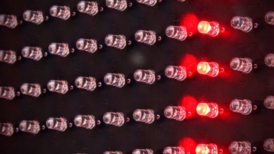 LEDビジョンは多数のLED素子が格子状に並ぶことで映像を表示しています。このLEDの間隔が狭いほど、画面上のドットが密集するため、より細かく滑らかな映像を表現できます。